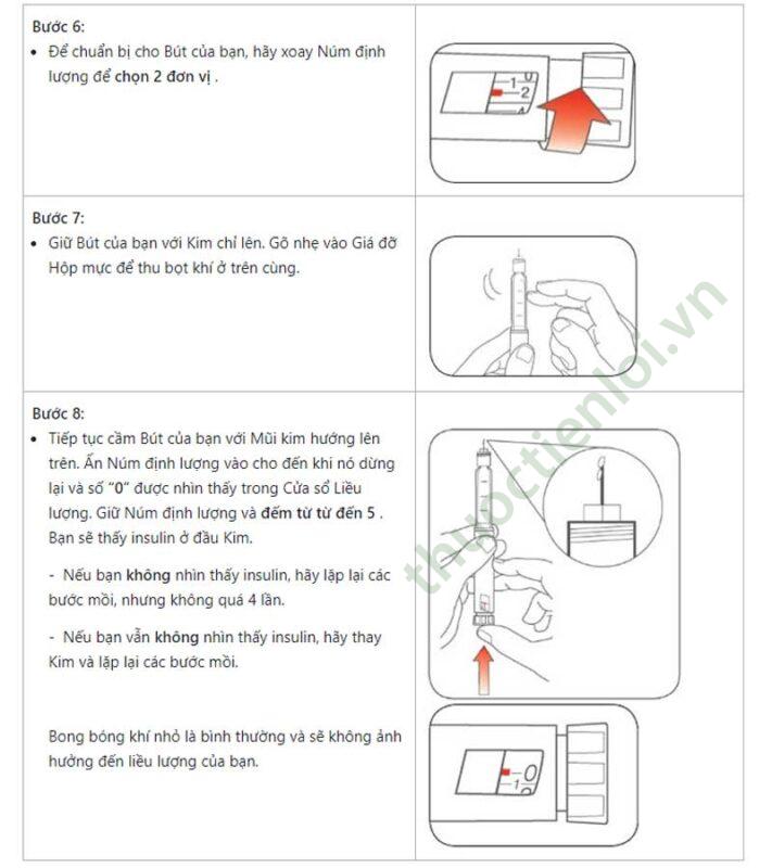 - Loại bỏ bọt khí khỏi kim và bút tiêm trước mỗi lần tiêm để bút hoạt động chính xác.