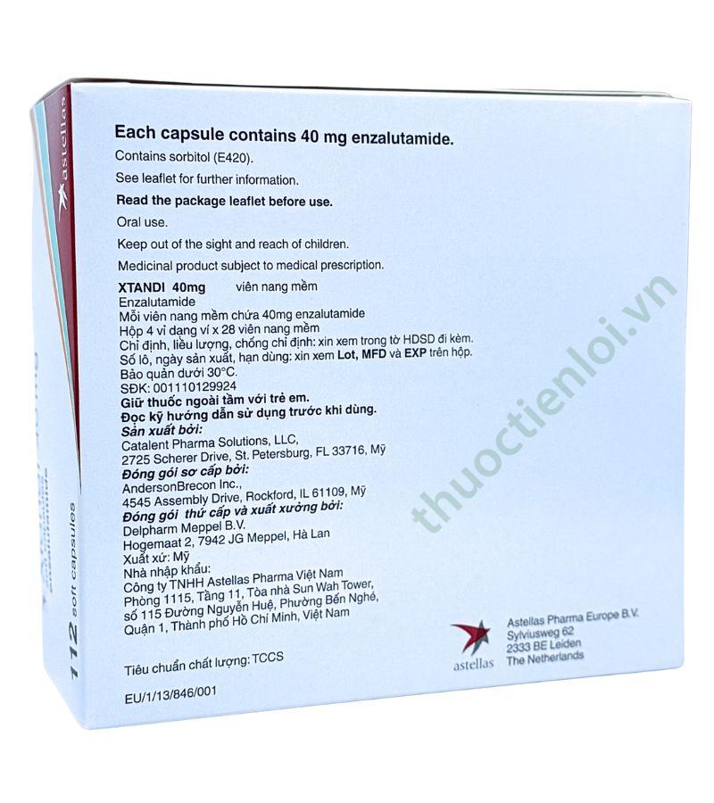 Thuốc Xtandi hàng chính hãng được phân phối chính thức tại Việt Nam. Theo quy định trên hộp thuốc phải có tiếng Việt, có SĐK rõ ràng