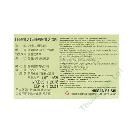 Thành phần Chiết xuất Linh Chi: 16,9% Lactose: 33,7% Sucrose: 32,5% Calcium Carbonate: 12,7% Gum Arabic: 2,1% Gelatin (fish): 0,8%
